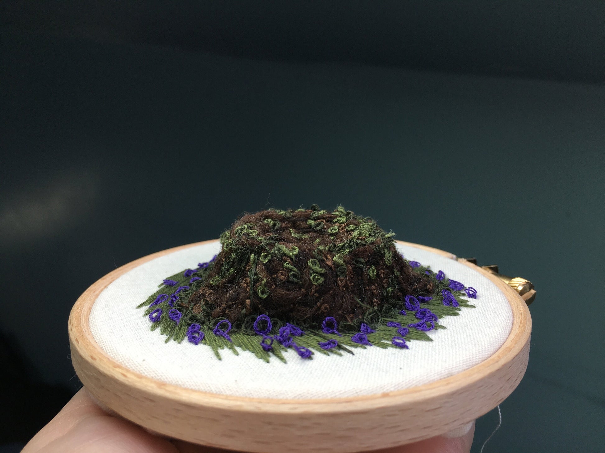 Once finished your piece will sit perfectly in a 4 inch hoop and can be displayed in the one provided. If you have any questions send me a message, i am open for any questions you may have while stitching this project!