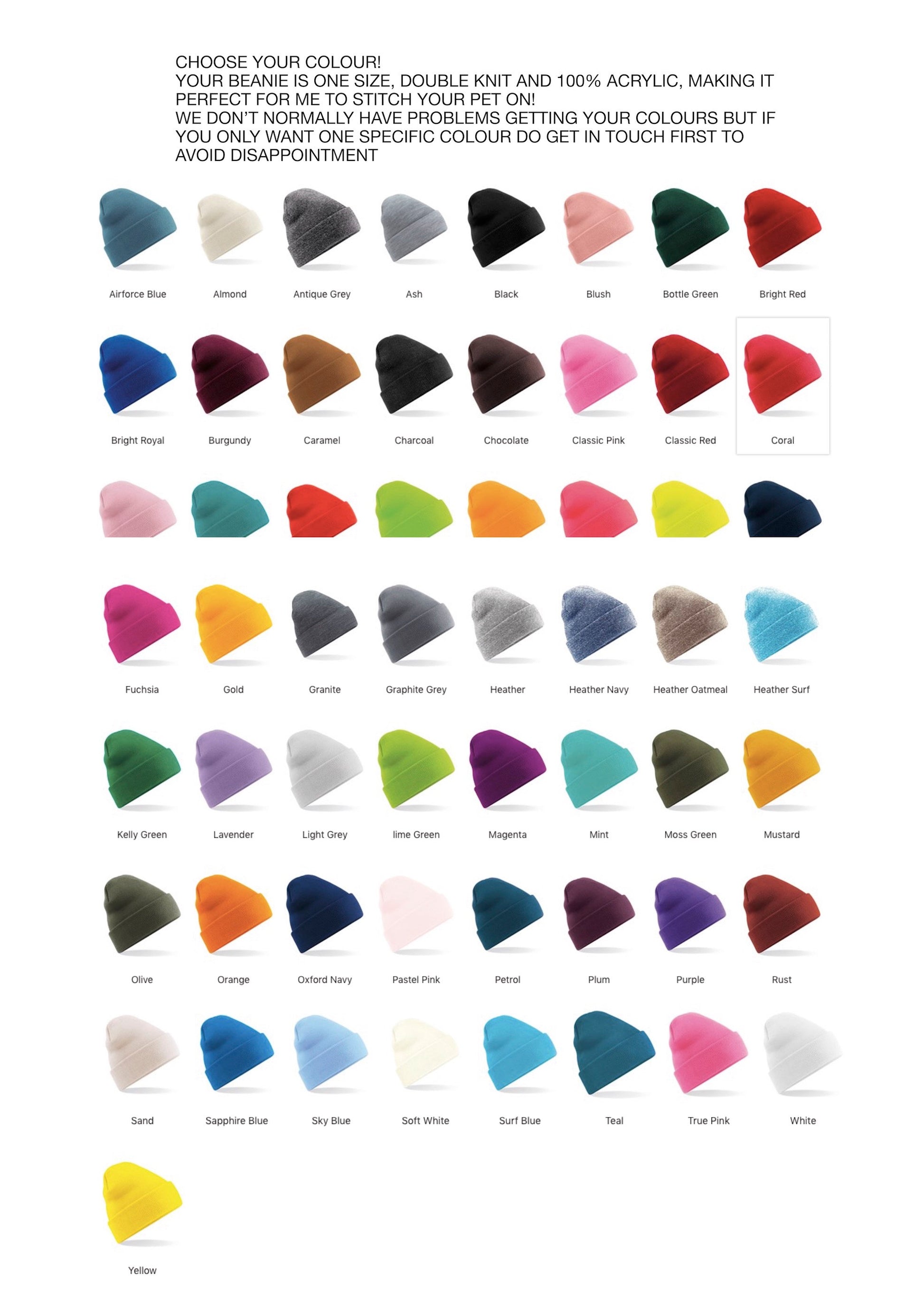 First choose how many pets you want on and let me know the colour beanie you want.
